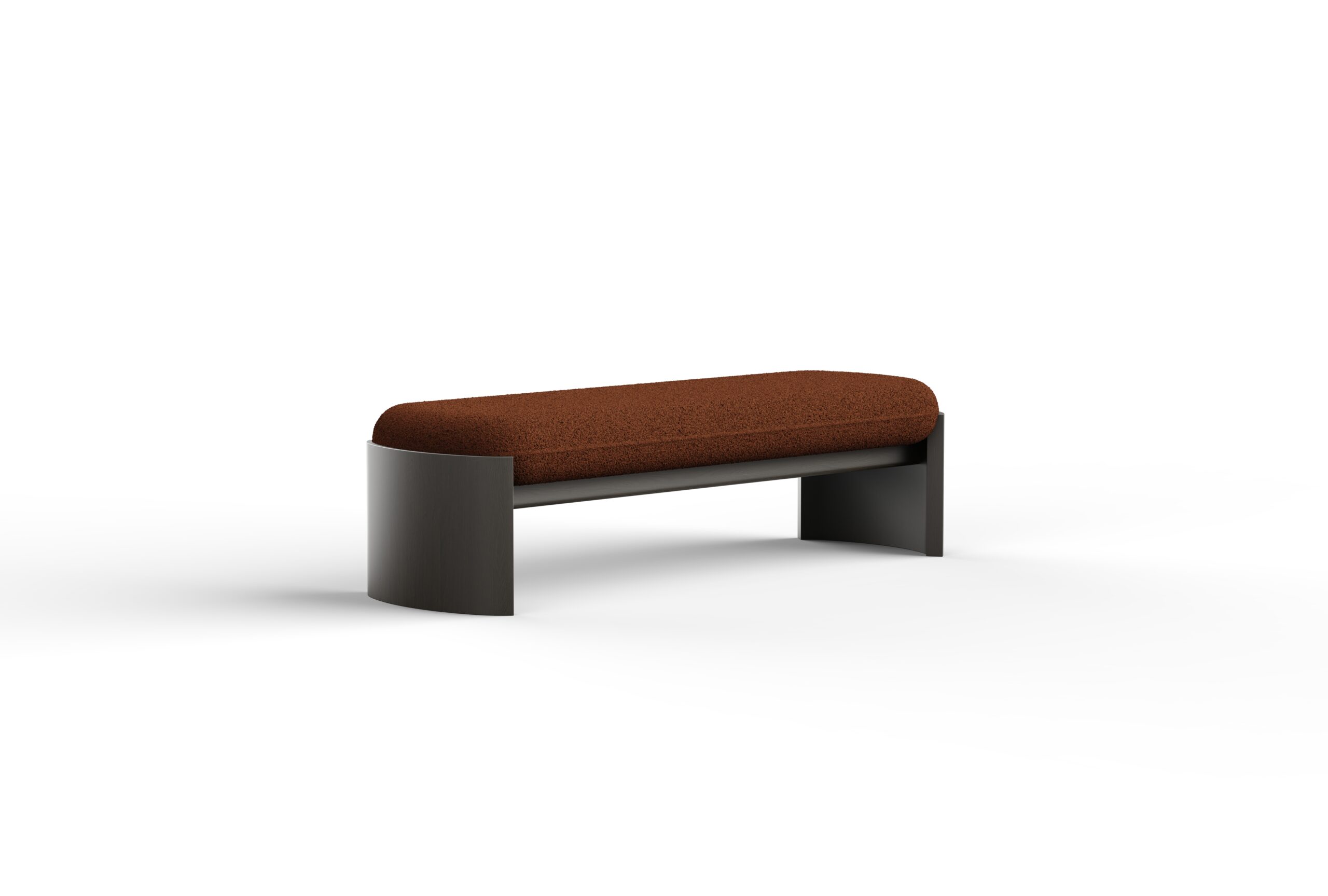 Artis Bench exemplifies elegant simplicity through the seamless fusion of an oblong upholstered seat and gracefully curved, veneer-finished legs. The generously proportioned seat is visually balanced by slender, sculpted legs that offer both lightness and stability.