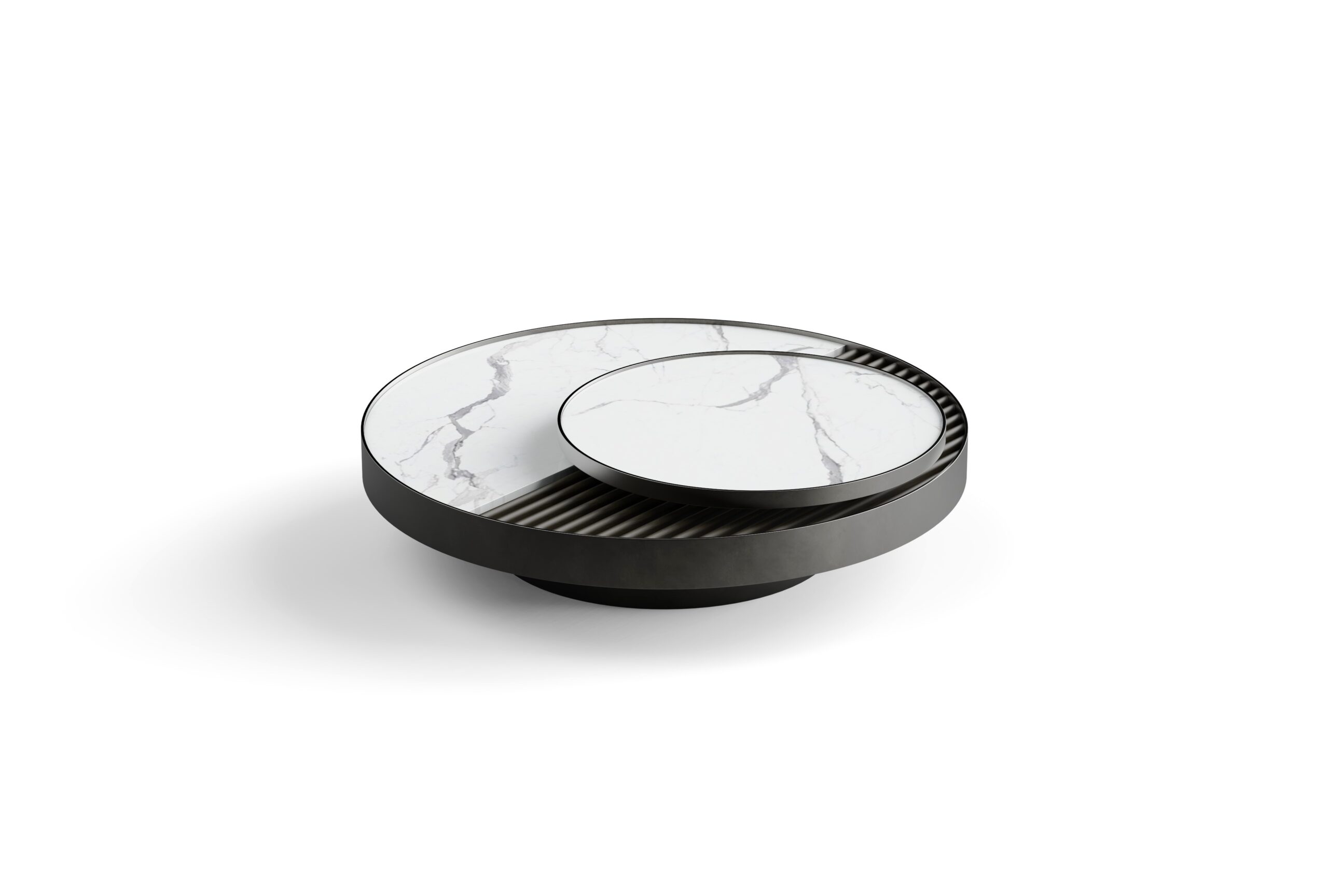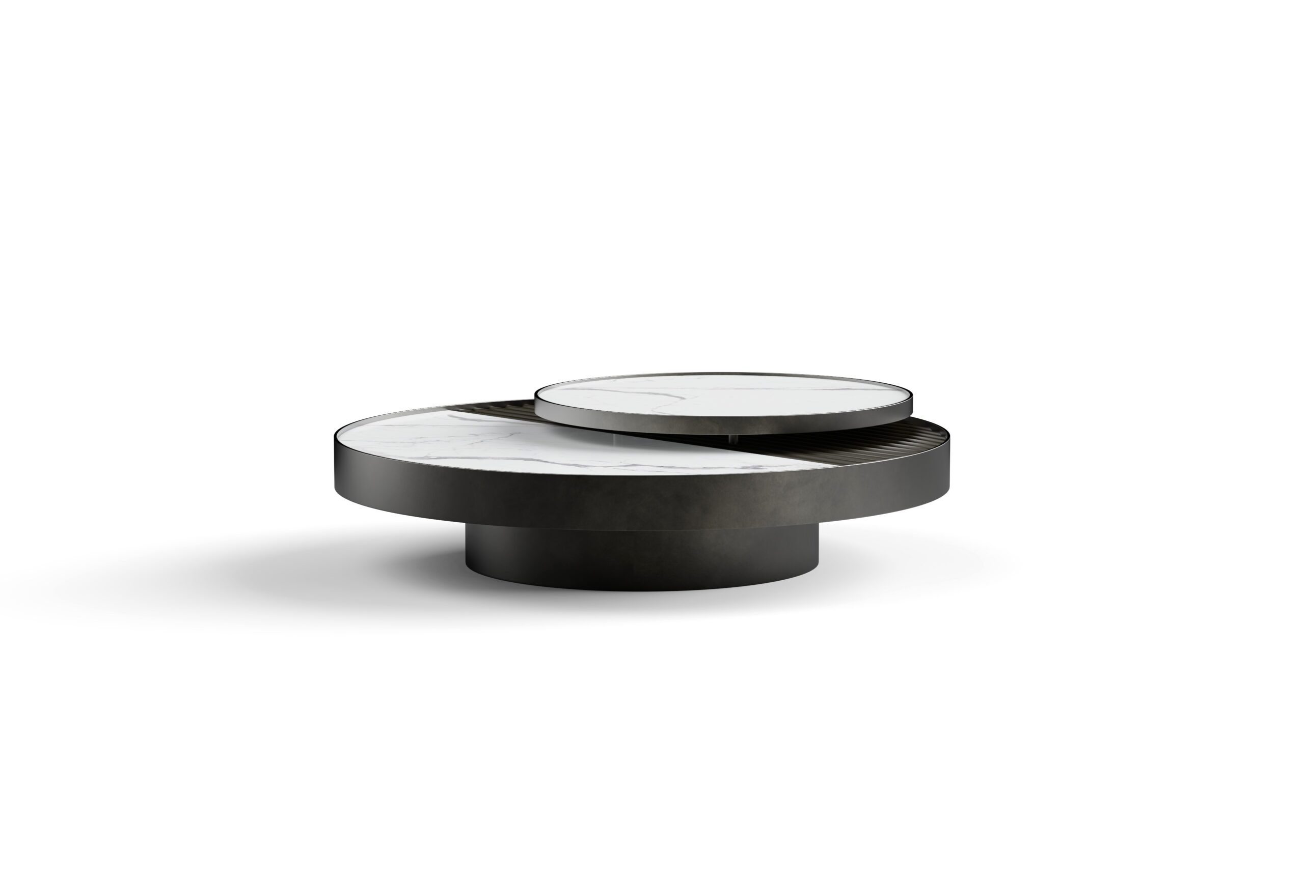Inspired by the silhouettes and shifting phases of the moon, Mezza is a sculptural coffee table that balances artistic rigor with functional design.